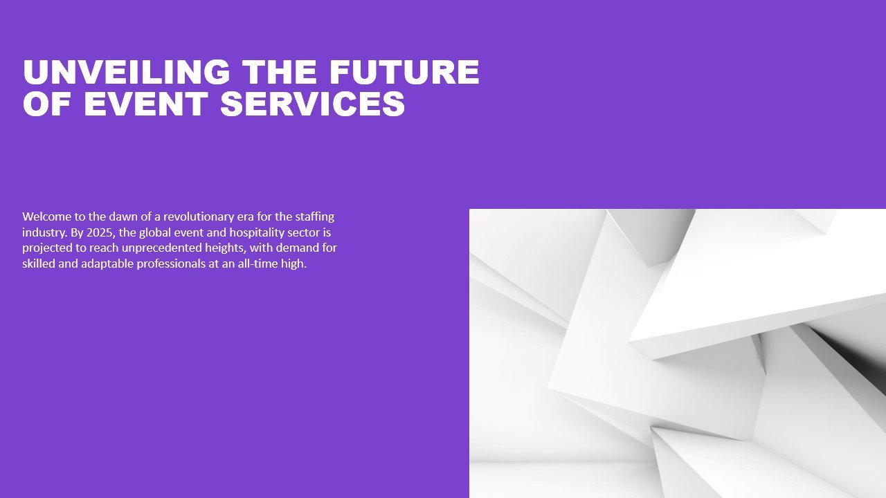 Download our “Unveiling the Future of Event Services” template and transform the way you communicate. These templates are designed for anyone seeking high-quality, user-friendly tools to create presentations that stand out.